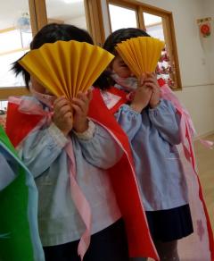 保育園では おひなさまを かざります。 ひなまつりを 祝って おひなさまも 作りました。